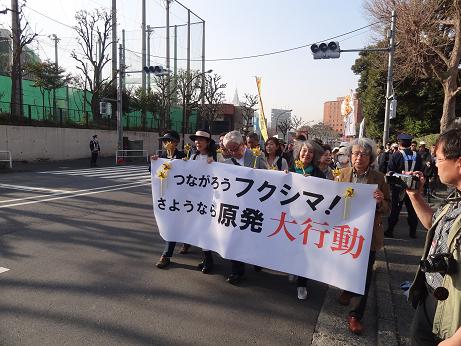 2011年3月11日の東日本大震災・東京電力福島第1原発事故から2周年を前に、3月9日、東京・明治公園で「さようなら原発1千万署名市民の会」主催で、「つながろうフクシマ!さようなら原発大集会」が開かれ、全国から1万5千人が参加しました。