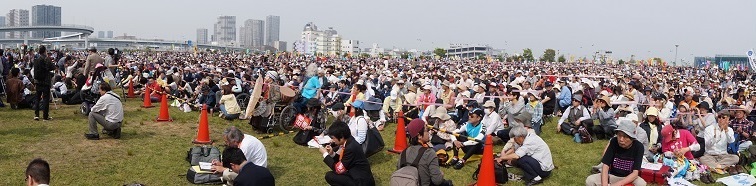安倍晋三首相が自ら改憲を公言するなか、憲法破壊・人権破壊・生活破壊の安倍政権の暴走に歯止めをかけようと、5月3日に東京・江東区の有明防災公園で「明日を決めるのは私たち―平和といのちと人権を!5.3憲法集会」が開かれ、5万人が参加、「憲法を守れ」「戦争法廃止」「安倍政権退陣」などと声を上げました。