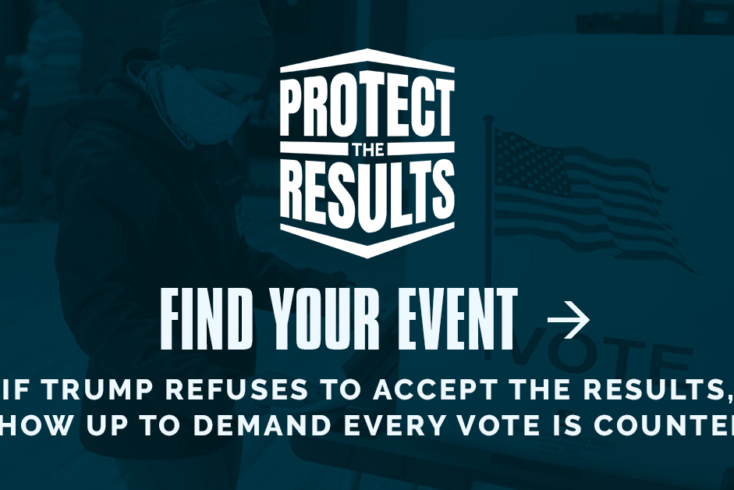 “PROTECT THE RESULTS”(「選挙結果を守れ」)は、原水禁大会に持続的に参加するアメリカでのパートナー組織である“Peace Action”など約200の幅広いNGOや労働組合が結集したネットワークである。トランプが文字通り選挙結果を“盗み取ろう”とするのに対し、その防衛のための行動を、SNSを駆使し、集会の開催や議員へのロビーイングなどを地域草の根レベルで展開している。また保守派は大統領選に限らず、民主党支持が多い黒人やラティーノなどマイノリティを狙い、選挙権を制限しようとしており、それに対抗する動きも欠かせない。