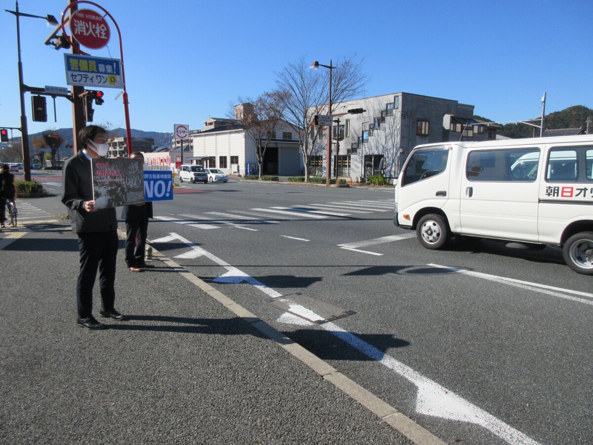 熊毛ブロック護憲平和フォーラムが参加する「馬毛島への米軍施設に反対する市民・団体連絡会」は11月27日、基地建設を強行する防衛省の進め方に抗議するため、種子島の西之表市内で馬毛島基地建設強行に抗議する市民集会とパレードを開催しました。集会では、川内博史前衆議院議員をはじめ県会議員、安保破棄中央実行委員会やフォーラム平和・人権・環境など団体からの連帯あいさつ、鹿児島県内の自然保護団体などからの連帯メッセージが紹介され、馬毛島の環境保全と、周辺住民のいのちとくらしを守る意思を参加者一同で固めあいました。