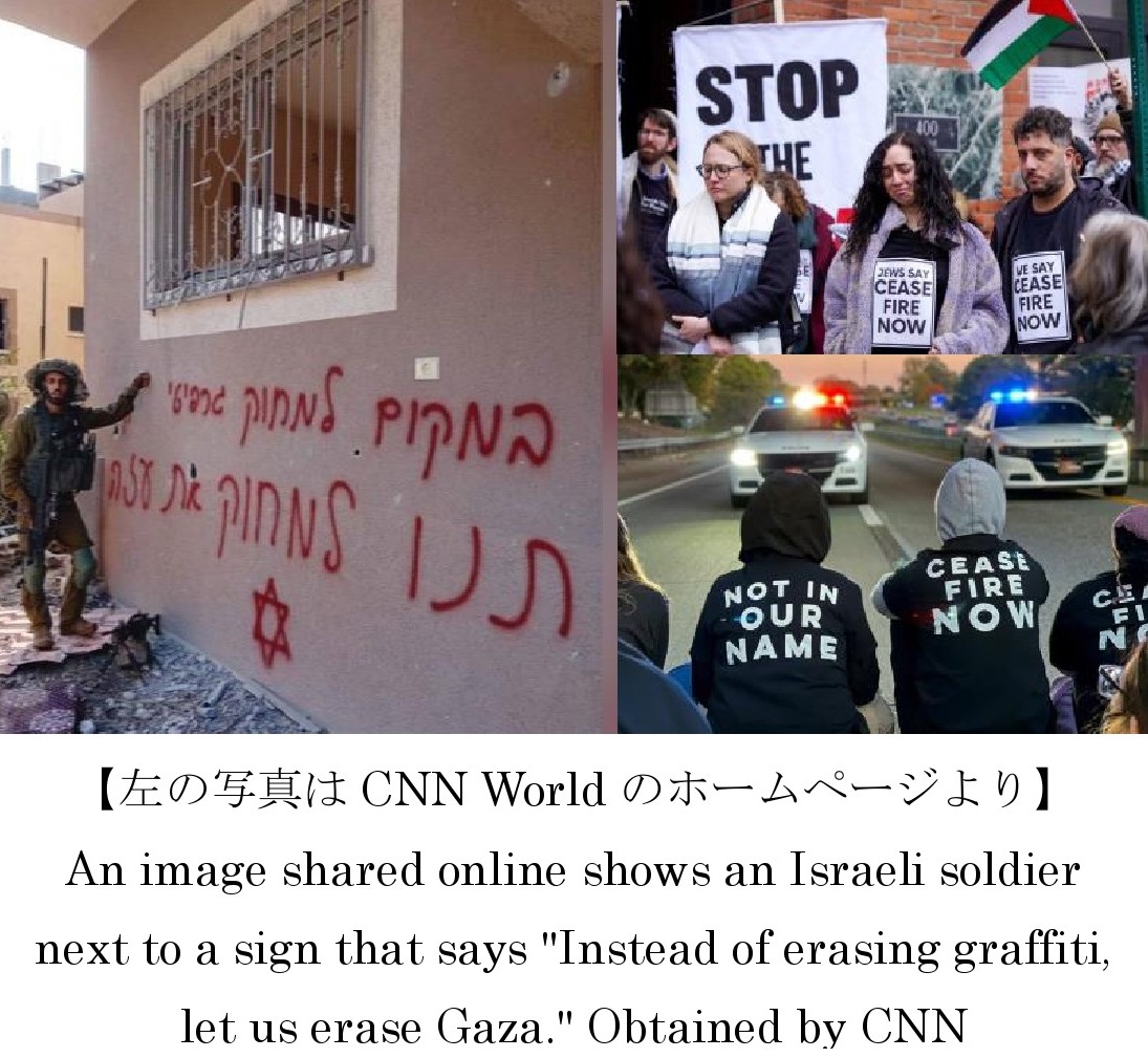 イスラエル兵のモラル崩壊状況も兵士たち自らのSNS投稿によって明らかにされた。商店に陳列されている子供用の人形を破壊する様子、配給用の食料や水に放火する様子、パレスチナ人捕虜にイスラエル国旗を被せ、記念撮影をする様子などが拡散されている。ガザの破壊跡のあちこちに書かれた人種差別的落書きが報道されたため、落書きの消去命令が出されると、「落書きを消すかわりにガザを消去しよう」と書いた落書きと一緒に記念撮影をするイスラエル兵が現れるなど、歴史上のあらゆる侵略軍の例に違わず、軍紀紊乱を正すことができないイスラエル軍の状況が明らかになった。
