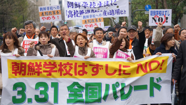 2012年12月28日、下村博文文部科学大臣は、拉致問題等を理由として、高校無償化法から朝鮮学校を排除する方針を発表し、2013年2月20日、文科省は高校無償化法の施行規則の改訂と全国10校の朝鮮高級学校の不指定処分を行った。