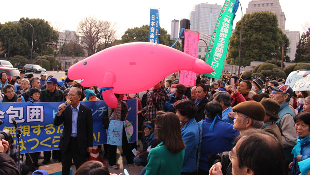 安倍政権は昨年末の総選挙での「勝利」を受けて、憲法違反の閣議決定に基づく日米ガイドライン改定や戦争関連法案提出、沖縄・辺野古新基地建設、原発再稼働、歴史認識の改ざん、貧困と格差の拡大、そして憲法改悪などへ突き進もうとしています。こうした動きを止めようと、1月に都内で連続して行動に取り組みました。