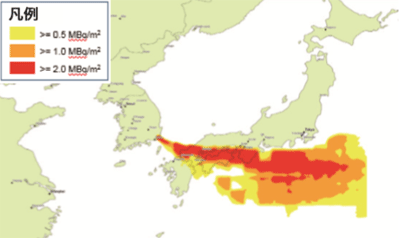 二人はプール火災がペンシルバニア州のピーチボトム原発で起きた場合についても分析しました。また韓国出身の原子力工学の専門家姜政敏(カン・ジョンミン)博士は二人と協力して、韓国の古里原発でプール火災が起きた場合、風向きによっては西日本で約2800万人が強制避難という研究結果を発表しました(下図)。これが朝日新聞デジタル版(2017年3月7日)で報道され話題になりました。