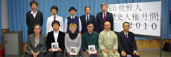 在日朝鮮人の人権問題は文化的・歴史的性質を有しており、その民族性を尊重するならば約1世紀に及ぶ歴史を知ることが不可欠です。過去の在日の歴史と現在の国際的な人権の趨勢を学ぶとりくむ『在日朝鮮人歴史・人権』のとりくみは、2010年は「韓国併合100年」をテーマに、それまでの「週間」から「月間」のとりくみとし、8月22日から9月20日をメインに、4月24日の先行西日本集会(奈良)、8月29日の東日本集会(神奈川)、9月18日~19日の全国集会(福岡)など、全国各地で35イベント約6000人が参加して行われました。そのまとめの会が、11月12日、京都教育文化センターで行われました。21世紀を担うこれからの世代が「在日朝鮮人歴史・人権」のさまざまな活動を奨励するために設けられた奨励賞について、表彰が行われました。本年は、特別賞は該当無しとなりましたが、優秀賞に、同志社大学KOREA文化研究会と、日朝友好愛知学生の会。奨励賞に留学生同盟兵庫「強制連行真相究明サークル」が受賞しました。このうち同志社大学KOREA文化研究会は、1990年代初めから日朝関係史講座を積み重ね本年は「『韓国併合』100年を問う」とのテーマーで植民地検証、在日一世の思い、高校無償化等の講座とフィールドワークを企画し、在日の歴史と人権問題から日朝友好に寄与したこと。日朝友好愛知学生の会は、日朝による学習、シンポ、一世のインタビュー、朝鮮学校訪問、金沢スタディツアー企画など精力的なとりくみを通じ「記憶の継承」の重要性を確認。これら斬新な活動は「毎日」「朝日」新聞などでも広く紹介されてきたこと。留学生同盟兵庫「強制連行真相究明サークル」は、強制連行を統計的・学術的に調査研究する基礎資料として数万人の名簿をコンピューター入力し分析を行い、南北朝鮮を含め現時点で最も正確な名簿を整理しているものと評価されました。表彰は、国平寺のユン・ビョガン住職が行い、つづいて表彰された3団体からのプレゼンテーションによる報告が行われました。 そのうえで、寺尾光身審査委員長から受賞団体の活動評価とまとめが報告され、終了しました。