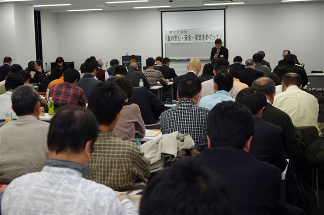 農林水産省の大臣官房政策課上席企画官の鳥海貴之さんは、TPPの影響と対策の説明のほか、「食と農林漁業の再生推進本部」が提起している「食と農林漁業の再生のための基本方針」を説明。①新規就農の増加と規模拡大の加速、②6次産業化、消費者との絆の強化、輸出戦略の立て直し、③エネルギー生産への農山漁村資源の活用促進、④森林、林業再生プランの推進、⑤近代的・資源管理型で魅力的な水産業の再生、⑥震災に強いインフラを構築、⑦原子力災害対策に正面から取り組む戦略をあげた。また、食料・農業・農村基本計画の3本柱(①戸別所得補償制度の導入、②農山漁村の6次産業化、③消費者ニーズに適った生産体制への転換)についての説明がなされた。