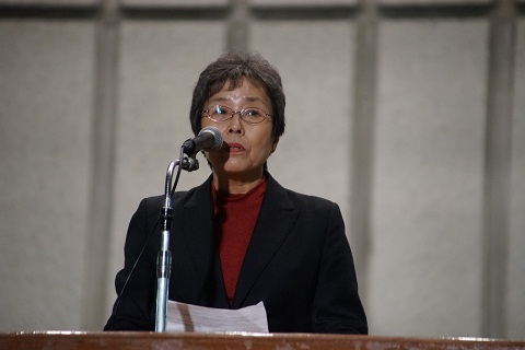 集会アピールをI女性会議の大塚優子さんが提案し、「知る権利の侵害が民主主義、憲法、平和への侵害になる」と確認。最後に平和フォーラムの藤本事務局長が「稀代の悪法・秘密保護法を世論の力で廃案に追い込もう。今日はその第一歩だ」と訴え、全員で「団結がんばろう」を三唱して集会を終えました。