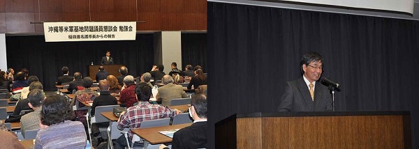 沖縄の基地問題はイデオロギーの問題ではなく、生活と人権の問題であり、海を埋め立てて基地がつくられることを名護市民は望んでいないと訴える稲嶺市長の発言に、参加者は真剣に耳を傾けていました。