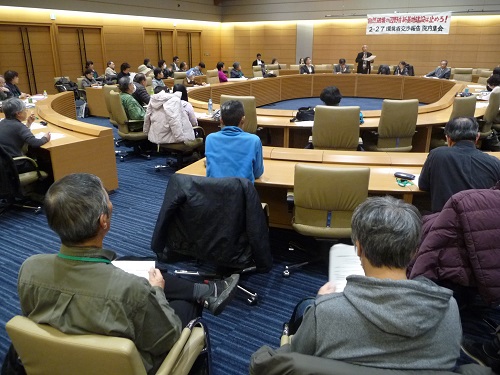 これを受けて2月27日、沖縄から「ヘリ基地建設反対協議会」の安次富浩さんらが上京して、環境省に申し入れと交渉を行いました。また、その後には衆議院第一議員会館において、報告集会「自然破壊の辺野古基地建設は止めろ2.27院内集会」が開催されました。