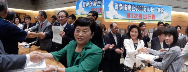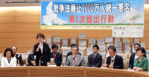 戦争法廃止統一署名第2次提出-1580万筆達成 さらにたたかいを
