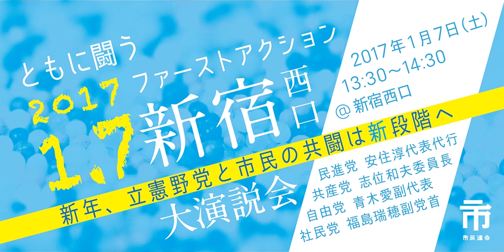 ともに闘う 2017ファーストアクション 1.7新宿西口大演説会に集まろう!