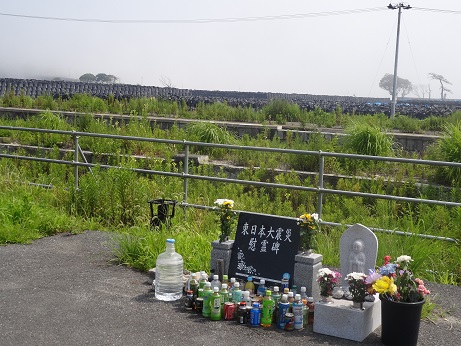 また、2日にはフィールドワークが行われ、原発のある大熊町や双葉町をはじめ、周辺の町村を訪ねました。多くの地点は放射線量がいまだに高いため、車窓からの視察になりましたが、徐染が行われ廃棄物を入れたフレコンバッグの山が各所に見られ、事故当時のままで無人となった家屋や草木が生えた田畑などが続いていました。特に原発の近くの高速道路上の空間線量は、許容限度をはるかに超える5マイクロシーベルト以上を表示しており、収束にはほど遠い実態が明らかになりました。