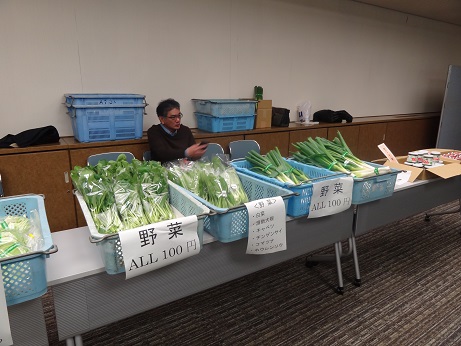 また、フィールドワークとして、石川県と富山県の集会実行委員会が企画した、富山県南砺市のJA福光米穀施設視察や世界遺産の五箇山を見学するコースと、石川県輪島市・珠洲市で千枚田や塩作り体験、地産地消弁当を賞味するコースの2つが実施されました。冬の日本海特有の厳しい気象条件にも関わらず、地域資源や文化を生かした取り組みを学びました。また、地元の高校の農業科で学ぶ生徒達が作った野菜や加工品の販売コーナーも設けられ、新鮮な加賀野菜などが人気で、たちまち完売しました。(写真右)