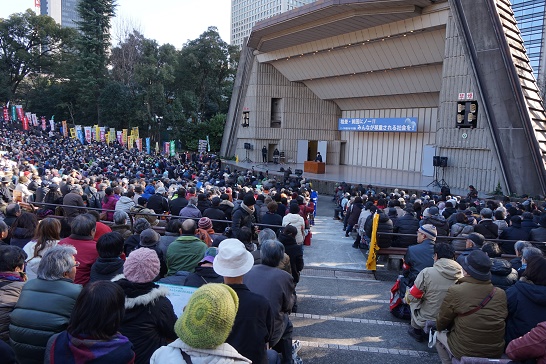 2月19日、「戦争をさせない・9条壊すな!総がかり行動実行委員会」は、東京・日比谷野外音楽堂で「貧困・格差にNO!みんなが尊重される社会を!2.19総がかり行動」を開催し、約4000人の市民が集まりました。