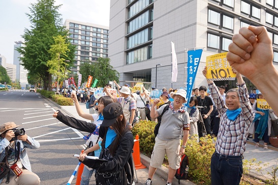 最後に「共謀罪は、国会会期末の1週間の闘いにかかっている。連日の集会に最大の運動を」(総がかり行動実行委の福山真劫さん)と行動提起があり、全員でコールを行って終了しました。