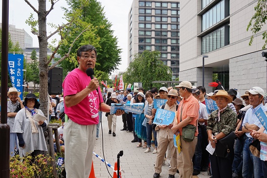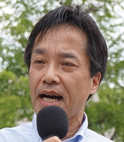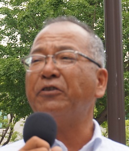 さらに、同県民会議事務局長の大城悟沖縄平和運動センター事務局長(顔写真左)は「今も違法な工事が行われている辺野古で、本日1800人が集まり連帯集会を行った。県民の民意を踏みにじる安倍政権を許さず、沖縄を戦場にさせない闘いを続ける」と決意を表明。また、辺野古現地から「ヘリ基地反対協議会」共同代表の安次富浩さんも登壇し、「我々は権力の弾圧を恐れない。民主主義は勝ち取るものだ。沖縄の問題を日本全体の問題として闘おう」と訴えました。