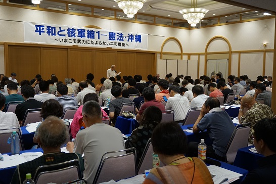8月5日、被爆72周年原水禁世界大会・広島大会の2日目は、午前中に7つの課題別に分かれての分科会が開かれました。「平和と核軍縮」の分科会は、安倍政権の戦争をする国作りに対して、憲法を元に平和構築をどう図るかと、国連の核兵器禁止条約採択を受けての東北アジア非核地帯化の課題をさぐる分科会が開かれました(写真上)。