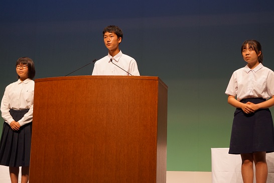 毎年、全国の高校生がジュネーブの国連欧州本部を訪れ、核兵器廃絶を訴えている高校生平和大使は、今年は第22代を迎え、広島県内から選出された牟田悠一郞さん、北畑希美さん、松田小春さんが登壇し、代表して牟田さんが「私の祖父が原爆を経験したことから、若い世代がこれからもっと学び、伝えていかなければならない」と決意を述べました(上写真右)。