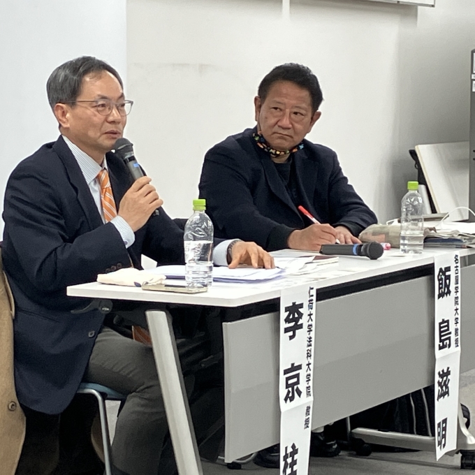 こうした状況を踏まえ、イ・キョンジュ(李京柱)さん(韓国・仁荷大学法科大学院教授)と飯島滋明さん(名古屋学院大学教授)から講演を受けました。