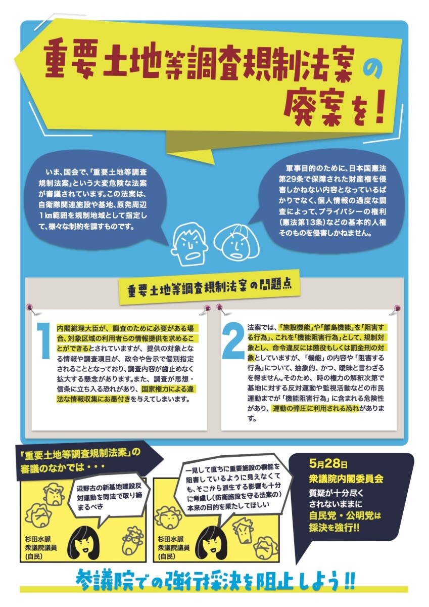 チラシ「重要土地調査規制法案の廃案を!」のご紹介