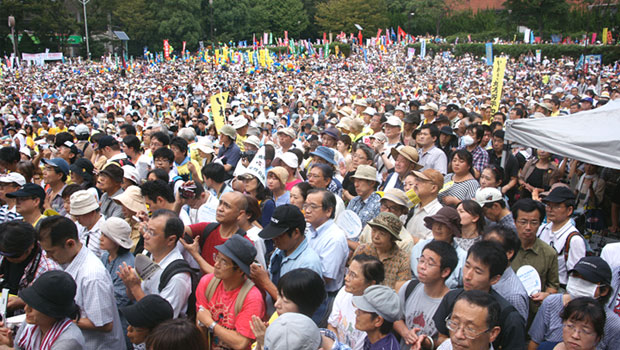 「さようなら原発 いのちが大事!」「子どもたちを守ろう!」「海・空・大地を守ろう!」─会場を埋め尽くす6万人のシュプレヒコールが響き渡りました。福島第一原子力発電所の事故を受け、9月19日、作家の大江健三郎さん、鎌田慧さん、瀬戸内寂聴さんなどが呼びかけた「さようなら原発1000万人アクション」の集会が東京・明治公園で開催されました。原発問題を訴えるアクションでは過去最大規模のものとなり、脱原発への決意を新たにしました。