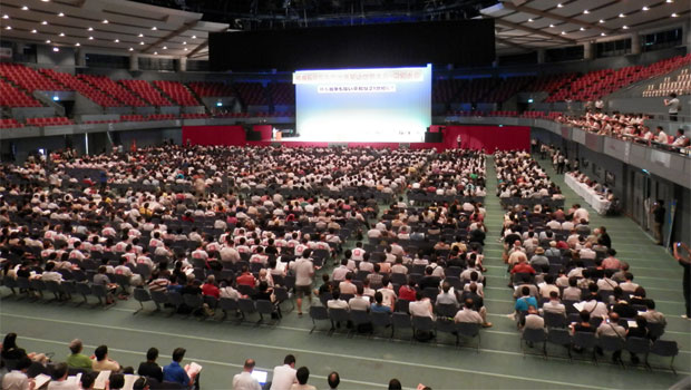![]() 1200人が参加した福島大会 (7月28日・福島県教育会館) |