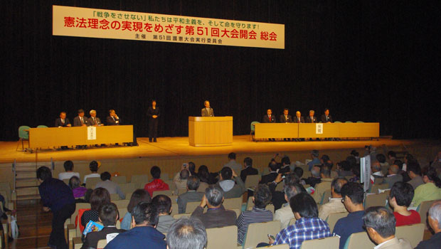 憲法理念の実現をめざす第51回大会は、11月1日~3日に岐阜市で開催されました。安倍晋三首相の数に力を借りた政治手法は、憲法理念をねじ曲げ、これまでの平和と民主主義、基本的人権の尊重、そして多文化共生の方向から、「戦争をする国」、戦前の軍国主義を彷彿とする暗澹たる世界へと引きずり込もうとしているように感じられます。