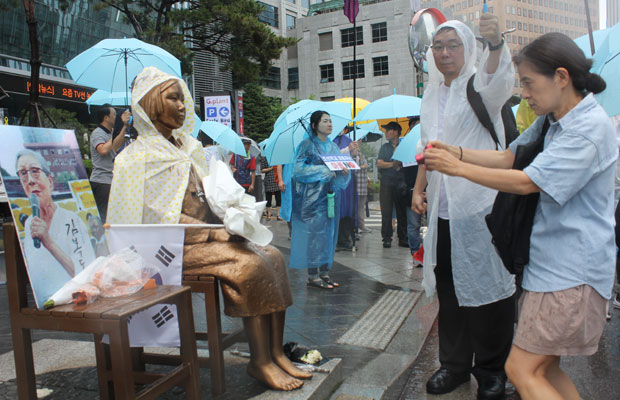 8月14日、韓国・旧日本大使館前で従軍慰安婦問題の解決を求めて毎週水曜日に開かれている「水曜集会」が、1400回目を迎えました。この日は、1991年8月14日に故・金学順(キム・ハクスン)さんが、日本軍の従軍慰安婦であったことを名乗り出た日に当たり、「世界慰安婦の日」となっています。韓国だけではなく、日本や英国、オーストラリアなど世界9カ国・地域の21都市で、慰安婦問題の解決に向けたとりくみが行われました。