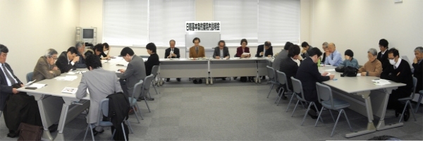 2010年は、日本が朝鮮半島を植民地化した1910年から100年目の重要な節目の年。戦後65年がたちましたが、日本はいまだに朝鮮民主主義人民共和国(北朝鮮)と国交がないばかりか、北朝鮮の核やミサイルの問題は東北アジアにおける不安要因となったままです。連絡会は、歴史的な節目の年である今年、日本が北朝鮮との関係正常化に向け画期的な前進をなしとげることが必要だとの立場から、2010年末までにまず日朝基本条約を締結することを日本政府はじめ各界に提起しています。この会合は、連絡会が提案する「日朝国交正常化に向けた私たちの提案」「日朝基本条約案」についての国会議員などに説明するものでした。