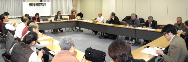 2010年は、日本が朝鮮半島を植民地化した1910年から100年目の重要な節目の年。戦後65年がたちましたが、日本はいまだに朝鮮民主主義人民共和国(北朝鮮)と国交がありません。そればかりか、北朝鮮の核やミサイルの問題は東北アジアにおける不安定要因となったままです。連絡会は、歴史的な節目の年である今年、日本が北朝鮮との関係正常化に向け画期的な前進をなしとげることが必要だとの立場から、2010年末までにまず日朝基本条約を締結することを日本政府はじめ各界に提起しています。この会合は、連絡会が提案する「日朝国交正常化に向けた私たちの提案」「日朝基本条約案」について、国会議員などを相手に行った2月16日の「院内説明会」につづいて、各界の意見を受けて条約案を改めて検討する場でした。学習会では、日朝条約案の原案を起案した和田春樹連絡会顧問が、1月に東京(23日)と韓国(29日)で行われた2つの韓国併合100年をテーマとした2つのシンポジウムにパネリストとして参加し、日朝基本条約案について提起したこと。さらに、これに対する意見・討論について報告しました。日韓条約の評価、賠償問題と経済協力など多岐にわたる論点を報告しましたが、日本の外務省周辺では1991年に日朝交渉が始まって20年経っても条約作成などの準備作業が皆目なされていないことが指摘されました。