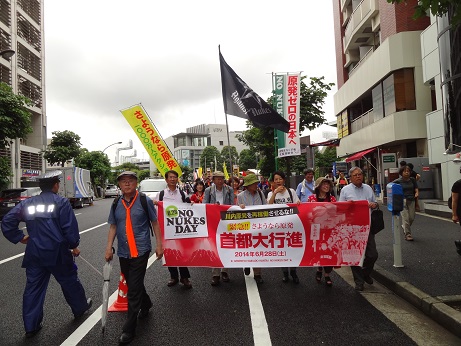 安倍政権は、「脱原発」の世論を無視し、鹿児島の川内原発を皮切りに全国の原発の再稼働を推進しようとしています。参加者は、現在、原発ゼロでも電気は足りているにも関わらず、避難計画も未整備のままに各地の原発再稼働が画策されていることに激しく抗議、デモ行進でアピールを行いました。