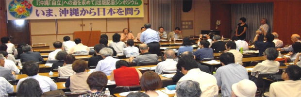 14人が執筆した『沖縄「自立」への道を求めて』(高文研刊)執筆記念シンポジウム「いま、沖縄から日本を問う」が、高文研や平和フォーラムなどの呼びかけで、9月11日、東京・全水道会館で開かれました。参加者約150人は、米軍基地「人工オアシス論」(基地がなくなり元の砂漠に戻るよりはまし)はじめ沖縄の基地経済からの脱却は困難などとする従来の「常識」からの発想の転換を促す執筆者からの提言に耳を傾けました。
