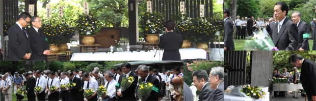 連日続くなかでもひときわ厳しさを増す猛暑となった8月15日、平和フォーラムは東京・千鳥ヶ淵の国立戦没者墓苑で戦後65年の「戦争犠牲者追悼・平和を誓う集会」を行い、各団体の代表など約250人が参加しました。平和フォーラムは、昨年秋の政権交代を踏まえて、千鳥ヶ淵墓苑での追悼を、衆議院議長や閣僚に要請しましたが、これに応えて、集会に先立ち、横路孝弘・衆議院議長が参拝しました。この他、菅直人首相やや枝野幸男民主党幹事長も参拝・追悼しました。集会は、I女性会議の大塚優子中央常任委員の司会・進行ですすめられ、12時の黙とうに続いて、江橋崇・平和フォーラム代表、川内博史・民主党衆議院議員、福島みずほ・社会民主党党首(参議院議員)による「誓いの言葉」が述べられたあと、各団体・参加者による献花が行われました。