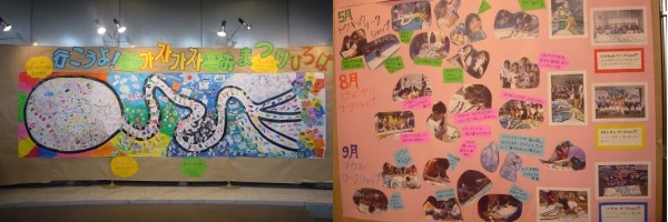 大韓民国・朝鮮民主主義人民共和国・日本そして在日コリアンの子どもたちの絵を、ひとつの会場に展示して、絵でお互いを紹介しあい、壁を乗り越える第一歩にしようと2001年から始まった絵画展「南北コリアと日本のともだち展」が、12月2日から5日まで東京・渋谷の「こどもの城」で行われました。今年で10回目。主催はNPO法人「地球の木」(横浜市)や「日本国際ボランティアセンター」(台東区)などによる実行委員会。会場に子どもの絵を約300点展示しました。今年の目玉は共同制作「行こうよ!カジャカジャ!おまつりりひろば」。絵本作家の浜田桂子さんが協力したもので、縦1.3m×横5mの大きな紙にピョンヤン・ソウル・東京3カ所からのびる道が描かれ、それぞれの道がくねりながらも合流して1本の道となり、「おまつりひろば」でゴールするというもの。途中に、お花畑の道、海や空の道、おばけの道まであり、その道の上にワークショップに関わった子どもたちの似顔絵が登場。5月に東京、8月にピョンヤン、9月にソウルで子どもたちが描いた絵を貼り付け、完成しました。ピョンヤンの子どもたちは、次にソウルに運ばれることにウキウキし、ソウルの子どもたちは何度もこの絵が本当にピョンヤンで描かれたのかを実行委員に聞いていたという、たくさんの人々の思いや願いが凝縮されたものです。
