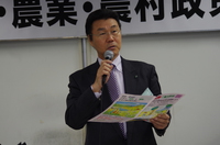 北海道農民連盟書記長の白川祥二さんは、北海道農民連盟の運動の一つとして、戸別所得補償制度導入に関する提言を説明。特に、北海道では約30万haを有する畑作(小麦、てん菜、馬鈴薯、大豆など)に対する戸別所得補償制度については、持続可能な畑作農業を実現するため総合的な所得補償制度の確立が重要である。また、TPPによる北海道への影響を説明。北海道経済の重要な地位を占める農業や関連産業に重大な影響を与えるとし、TPPについては反対である、とされました。