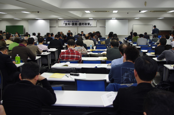 第2分科会「食料・農業・農村政策をめぐって」では、農業政策の展開、所得補償政策などの政策展望と課題、TPP(環太平洋連携協定)などの農産物輸入の動きと今後の運動等に焦点を当て、討論を行いました。助言者に東京大学大学院農学生命科学研究科教授の谷口信和さん、報告者には、農業団体関係者として北海道農民連盟書記長の白川祥二さん、自治体“農”ネット元代表の堀井修さん、行政関係者として農林水産省大臣官房政策課上席調査官の山口靖さんから、それぞれ報告して頂きました。