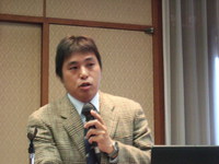 次に東京都福祉保健局健康安全部・食品医薬品情報担当課長の渡部浩文さんから東京都における食の安全・安心に関するとりくみについての報告がありました。東京都食品安全条例(平成16年3月制定)の内容や、同条例と東京都食品安全審議会、食品安全対策推進調整会議等による食品安全推進体制の説明、食の安全・安心情報の提供の方法、食品等の監視・検査では、JAS法に基づく表示適正化対策、食品の適正表示推進者の育成などを行っていることを報告されました。渡部さんは「リスク評価は国がやっているので、国が遅れている部分をやれる条例を都は作っている。リスクコミュニケーションは消費者からの考えを聞く場と考える」と述べられました。