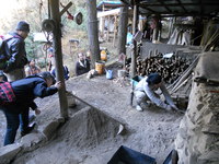 座学の後、DAIGOエコロジー村の拠点でもある炭焼窯の現場に移動し、白炭や竹墨の窯だし作業の実演を視察しました。また、自治労八王子市職員労組の手作りの豚汁などを食べながら、東京の中にもある里山の自然を満喫しました。