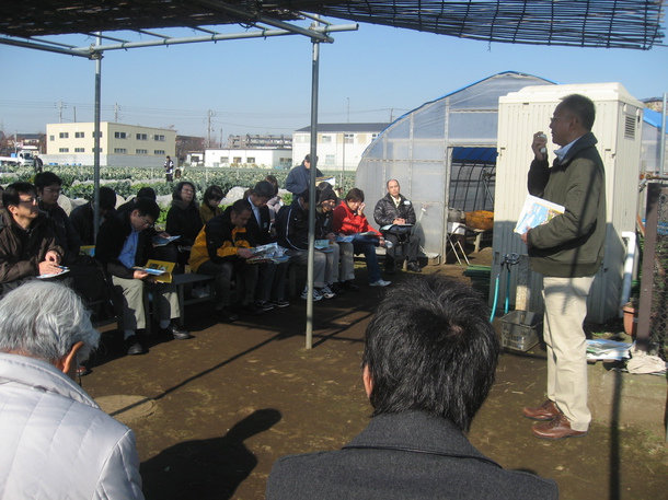 まず、練馬区の農業振興施策について、練馬区役所の都市農業課長が説明を行いました。練馬区では、産業として農業を育成するだけでなく、農業が持つ癒しの効果、教育的効果、自然環境保護、さらには地震などの災害時の避難場所としての活用など、多面的効果に着目して農業及び農地の保全に努めていると話されました。