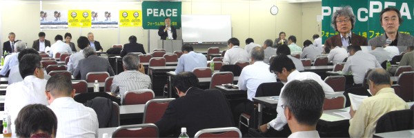 10月6日~7日、平和フォーラム・原水禁は全国都道府県・中央団体約80名の参加者のもと東京・日本教育会館で責任者会議を開催しました。この会議は、平和フォーラムのたたかう態勢(運動・組織)をあらためて確立するために行うもので、2006年から開始して6回目。今回は、3月11日の東日本大震災、東電福島第一原発事故という事態を受けて、「さようなら原発1000万人アクション」のとりくみを総力をあげておしすすめ9月19日には明治公園で6万人以上が参加する大集会を成功させてきました。広がる脱原発のとりくみをさらに具現化するためどうしていくかを学習・報告・協議する場として開かれました。第一日目は、福山真劫代表の主催者あいさつにつづいて、「私たちは福島とどう向き合うか」と題して1000万人アクション呼びかけ人の一人である著述家の鎌田慧さん、「ドイツの脱原発とエネルギー転換-ドイツが脱原発に向かった背景を探る」と題してドイツ在住26年でジャーナリストの福本榮雄さんのそれぞれ講演を受けました。そして、藤本泰成事務局長から「平和フォーラムをとりまく現状と課題」の提起が行われました。第二日目は、質疑、意見交換、とりくみ報告など、活発な討論を行いました。報告は、脱原発関係のとりくみで、北海道、青森、福島、茨城、新潟、岡山、山口、香川(四国B)、その他の課題で山形(護憲大会)、神奈川(原子力空母・教科書問題)、静岡、沖縄から受けました。これら受けて、藤本事務局長下欄まとめの後、川野浩一代表(原水禁議長)の閉会のあいさつを受けて全日程を終了しました。