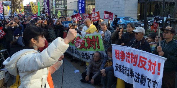 1月4日12時より、衆議院第二議員会館前で、戦争させない・9条壊すな!総がかり行動実行委員会主催による、「戦争法廃止!安倍内閣退陣!1・4 国会開会日総がかり行動」が行われ、3800人が参加しました。