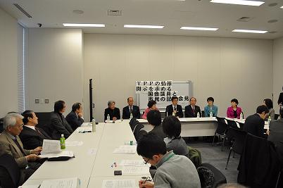 会見の席上、各議員からは「交渉を秘密にすることは民主主義の観点からも問題だ」(福島議員)、「アメリカなどの多国籍企業は内容を知ることが出来る。誰のためのTPPか明らかだ」(山本太郎参院議員=無所属)、「情報を提示し国民的が必要だ。国境を越えて運動しよう」(鈴木貴子衆院議員=新党大地)など、口々に政府の姿勢を批判しました。