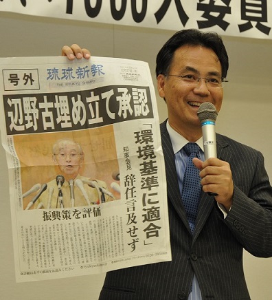 沖縄国際大学教授の前泊博盛さんが「沖縄からみた集団的自衛権、国家秘密法、安倍政権」と題して講演。前泊さんは昨年4月28日に安倍首相が「主権回復の日」として式典を開いたことを批判し、「沖縄は1951年のその日に日米安保条約で切り捨てられた。その後、沖縄は米軍基地の脅威にさらされてきた」とし、「集団的自衛権が行使されるような事態が起きた場合、米軍基地が攻撃対象となり、沖縄に住む141万人県民はその日から命の危機に直面する」と訴えました。そして「集団的自衛権の議論の前に、もっと論じてほしいのは、日本の外交力だ」と述べ、アメリカだけでなく他の国々とも安全保障を結ぶ新しい体制構築を提起しました(写真下右)。