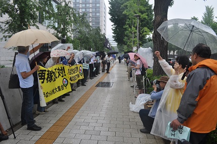 原子力規制委員会が近く、鹿児島の川内原発1、2号機の適合性審査について、新たな規制基準を満たしているとの審査報告書を出すこと見通しとなったことから、「さようなら原発1000万人アクション」は、川内原発の再稼働を許さない緊急行動を7月9日に行いました。