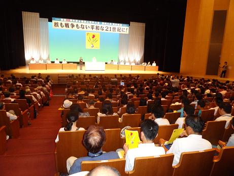 さらに、長崎の高校生の運動から始まった「高校生平和大使」と「高校生1万人署名活動実行委員会」の代表60人余りが登壇し、8月17日からの国連欧州本部訪問などの抱負を語り、また、運動の継承への決意も表明されました。