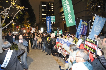 各所では野党各党の議員や、鎌田慧さん、落合恵子さん、佐高信さんなど呼びかけ人が「憲法違反の閣議決定に基づく日米防衛ガイドラインや戦争関連法案制定を阻止しよう」などと決意表明を行いました。