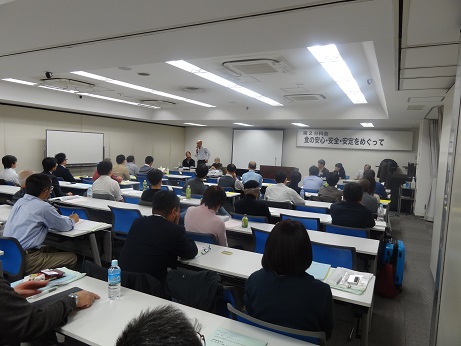 第2日目は分科会が開かれ、第1分科会 「課題別入門講座」では、原子力資料情報室の上澤千尋さんから「原発問題入門 原発はなぜ危険なのか」、練馬区で農業を営み、体験農園園主の白石好孝さんから「都会と農業の楽しい関係」の講演を受けました。第2分科会の「食の安心・安全・安定をめぐって」では、食の安全・監視市民委員会の神山美智子代表などが食の安全行政、学校給食への地場産農産物導入、有機農業の推進と地産地消運動について討議しました。