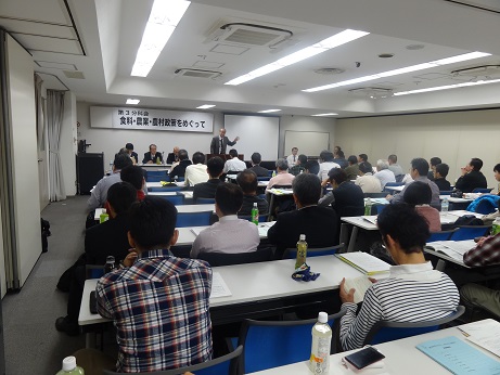 第3分科会の「食料・農業・農村政策」では、農林水産省の大臣官房政策課長や東京農業大学谷口信和教授などが、所得補償政策、TPPなどの農政の問題について議論を取り交わしました。第4分科会の「森林・水を中心とした環境問題をめぐって」では、水ジャーナリストの橋本淳司さんなどが、自治体での水保全の動きや水循環基本法、水と森林の関係について提起し、討論を行いました。