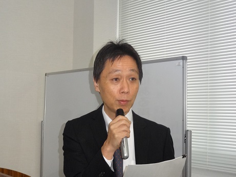 辻谷貴文全水道書記次長は「水循環基本計画の概要と課題」と題して報告。水は公共財であるとした「水循環基本法」の具現化として「水循環基本計画」が策定されましたが、この計画を実効ある政策にするために、議員連盟のもとに設置されたフォローアップ委員会が、地下水保全法などをめぐり休止状態となっている現状を説明しました。また、水は経済財であるとして利用規制に反対し、民営化を推進すべきとする立場の者と、水は公共財であり公的管理のもとに利用には一定の規制が必要という立場の者(私たち)が議論をする場としても、フォローアップ委員会を再開させ、超党派の議員連盟を再構築する必要があることを強調、縦割りの水行政を一つの省庁にまとめ統合的に管理する必要性を述べました。