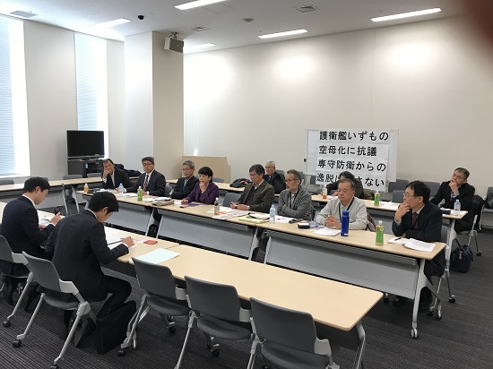12月18日、中央3団体(フォーラム平和・人権・環境、平和運動センター関東ブロック連絡会議、全国基地問題ネットワー)と神奈川5団体(神奈川平和運動センター、三浦半島地区労センター、非核市民宣言運動ヨコスカ、ヨコスカ平和船団、すべての基地に「NO!」を・ファイト神奈川)の8団体は、参議院会館で海上自衛隊の護衛艦「いずも」の空母化方針を防衛計画の大綱に明記しないことを求める要請行動を行いました。